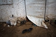 Entrance of a tent covered with spots of mud in the Azaz refugee camp where sanitary conditions are very worrying. The camp, in northern Syria, close to the turkish border, welcomes refugees fleeing the fightings between Syrian government forces and the Free Syrian Army.