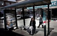 A woman at a bus stop in Ankara, the government and political heart of Turkey. Ankara is the capital since 1923 when the laic republic was installed.