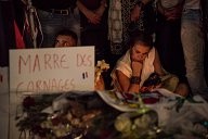 Nice on 15 July 2016. At nightfall very many people spontaneously gathered at the Meridian Hotel on the Promenade to honor the victims . People who came alone , with family, or with their children have placed flowers , candles, but also messages. Peace messages It read for relatives who died the night before or just sending a prayer to all deceased. A very strong emotion emanated during this meditation on the Promenade des Anglais in the aftermath of the terrorist attack that killed 84 and wounded more than 200 of which 18 are still in an absolute emergency condition four days after the tragedy. The attack was claimed the next day by the Islamic State
