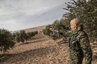 Syria RojAVA / Dec16 - Jan17. A young YPG shoots a target in the distance.
