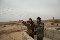 Syria ROJAVA / Dec16 - Jan17. On Aïn-Issa field, not far from the frontline. Two YPG soldiers are looking at the horizon.