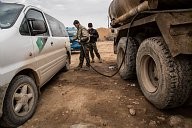 SYRIA ROJAVA / Dec16 and Jan17 - YPG focus on an useful way to distribute gasoline. YPG soldiers are taking some oil.
