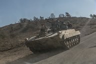 Syria ROJAVA / Dec16 - Jan17. A YPG tank on the road of Mahmudli Village.