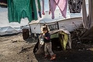 Syria ROJAVA / Dec16 - Jan17. Aïn-Issa refugees camp. A young child is walking through the camp.