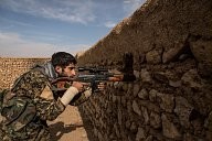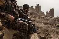 Syria RojAVA / Dec16 - Jan17. A YPG fighter shoots from the castle of Qalat Jabar