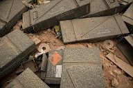 Syria ROJAVA / Dec16 - Jan17. Boxes of American ammunition dispatched all over the ground from the advanced bases.