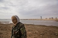 SYRIA - ROJAVA - Dec16 and Jan17 - A Kurdish soldier YPG comes down from its advanced base of recently liberated villages to the Euphrates. Daech is only a few kms away.