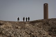 Syria ROJAVA / Dec16 - Jan17. A YPG soldier is looking at a dead body of an ISIS fighter in the middle of the desert.