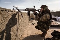SYRIA - ROJAVA - Dec16 and Janv17 - A Kurdish soldier YPG defends his base with a submachine gun.