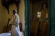 February 2017 - BOLIVIA / Region of Coroico / Chipita / Statiette of a black priest in a church - The Afrobolivianos are a Black African minority living in Bolivia. They were used in the transatlantic slave trade and settled in the Yungas of the department of La Paz, where they cultivate coca.