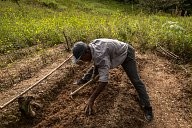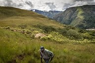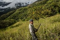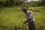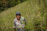 February 2017 - BOLIVIA / Region of Coroico / Muramata / THE KING OF THE AFROBOLIVIANS Julio Pinedo is also a farmer - HERE IN HIS COCA FIELD - Heir to the throne, Julio Pinedo is the direct descendant of an African king who was exiled as a slave from Uganda by Spanish settlers in the 16th century - The Afrobolivianos are a Black African minority living in Bolivia. They were used in the transatlantic slave trade and settled in the Yungas of the department of La Paz, where they cultivate coca.