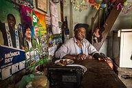 February 2017 - BOLIVIA / Region of Coroico / Muramata / THE KING OF THE AFROBOLIVIANS Julio Pinedo is also a farmer - HERE IN AT HIS HOME in front of a calendar showing EVO MORALES, the Bolivian president - Heir to the throne, Julio Pinedo is the direct descendant of an African king who was exiled as a slave from Uganda by Spanish settlers in the 16th century - The Afrobolivianos are a Black African minority living in Bolivia. They were used in the transatlantic slave trade and settled in the Yungas of the department of La Paz, where they cultivate coca.