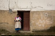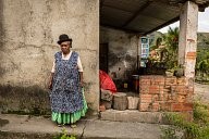 February 2017 - BOLIVIA / Region of Coroico / Muramata / Portrait of QUEEN ANGELICA (King Julio Pinedo's wife), in Muramata, in front of her home - The Afrobolivianos are a Black African minority living in Bolivia. They were used in the transatlantic slave trade and settled in the Yungas of the department of La Paz, where they cultivate coca.