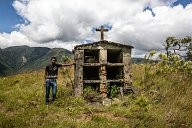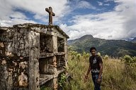 February 2017 - BOLIVIA / Region of Coroico / Muramata / Portrait of Muramata's Prince, Rolando, son of THE AFROBOLIVIANS' KING - Here in front of his deceased grandfather's fallen grave -The Afrobolivianos are a Black African minority living in Bolivia. They were used in the transatlantic slave trade and settled in the Yungas of the department of La Paz, where they cultivate coca.