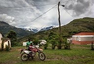 February 2017 - BOLIVIA / Region of Coroico / Chipita / Atmosphere of the street, a father instals her daughter on his motorbike. The Afrobolivianos are a Black African minority living in Bolivia. They were used in the transatlantic slave trade and settled in the Yungas of the department of La Paz, where they cultivate coca.