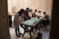 Archeology students, under the aegis of Maamoun Abdulkarim, at the National Museum of Damascus, work, sort and classify the various objects sent from Syrian regions. Most objects are damaged and require restoration. Damascus. Sept 2015