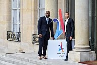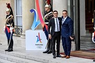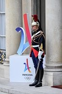 François Baroin, The French Olympic delegation back from Lima, is recieved by the french president Emmanuel Macron at the Elysée Palace.