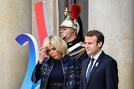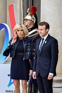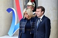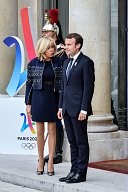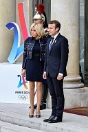 Brigitte Macron and Emmanuel Macron, The French Olympic delegation back from Lima, is recieved by the french president Emmanuel Macron at the Elysée Palace.