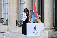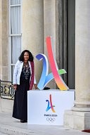 Laura Flessel, The French Olympic delegation back from Lima, is recieved by the french president Emmanuel Macron at the Elysée Palace.