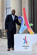 Teddy Riner, The French Olympic delegation back from Lima, is recieved by the french president Emmanuel Macron at the Elysée Palace.