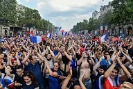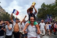 Paris : The celebration of the victory of the French team on the Champs-Elysée and in all Paris after the final of the World Cup football France-Croatia. The French are world champion