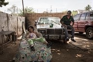 Venezuela - Maracaibo - A disabled person, tied to a chair by his mother who can not afford to send him to the hospital, because of a lack of money.