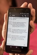 Venezuela - Maracaibo - A woman shows the message received from the government congratulating the voter for his choice - only this voter has been dead for several months, which shows that there were many frauds during the elections.