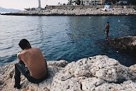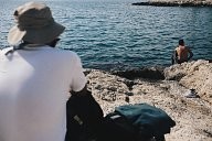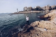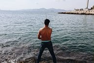 Portrait of Mounir who comes from Palestine. He has been waiting for his papers for a while. He is looking at the sea with a different eye because he has crossed from Turkey on a makeshift boat too.