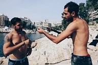 In the port of Piraeus, refugee friends share a fishing trip.