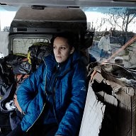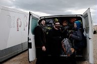 Despoina is sitting on the back of the van with the backpacks in Chios port. Dancers and actors from Winter-rise festival gathered money to buy backpacks to distribute to the families of immigrants. The backpacks contained steeling bag, thermos and food. A team of five arrived in Chios island and in collaboration with the locals (Chios Solidarity) who are organising and supporting the refugee passage gave the emergency backpacks the first week of January 2016.