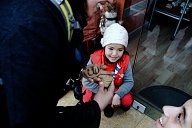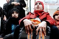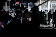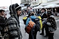 Refugee family on the port accepts the backpack offered by dancers and actors from Winter-rise festival,who gathered money to buy backpacks to distribute to the families of immigrants. The backpacks contained steeling bag, thermos and food. A team of five arrived in Chios island and in collaboration with the locals (Chios Solidarity) who are organising and supporting the refugee passage gave the emergency backpacks the first week of January 2016.