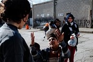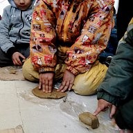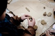 Refugees, adults and children participate at a clay workshop, organised from dancers and actors from Winter-rise festival gathered money to buy backpacks to distribute to the families of immigrants. The backpacks contained steeling bag, thermos and food. A team of five arrived in Chios island and in collaboration with the locals (Chios Solidarity) who are organising and supporting the refugee passage gave the emergency backpacks the first week of January 2016.