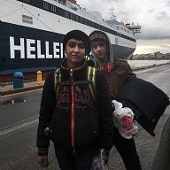 Young refugees in front of the ship, that will take them to Athens wear the backpacks ofered to them from dancers  from Winter-rise festival, who  gathered money to buy backpacks. The backpacks contained steeling bag, thermos and food. A team of five arrived in Chios island and in collaboration with the locals (Chios Solidarity) who are organising and supporting the refugee passage gave the emergency backpacks the first week of January 2016.