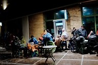 Despoina and Kostadis rest after an intense day of distributing things to the refugees in Chios. Dancers and actors from Winter-rise festival gathered money to buy backpacks to distribute to the families of immigrants. The backpacks contained steeling bag, thermos and food. A team of five arrived in Chios island and in collaboration with the locals (Chios Solidarity) who are organising and supporting the refugee passage gave the emergency backpacks the first week of January 2016.
