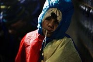 Young refugee wears the poncho offered to them from dancers  from Winter-rise festival, who  gathered money to buy backpacks. The backpacks contained steeling bag, thermos and food. A team of five arrived in Chios island and in collaboration with the locals (Chios Solidarity) who are organising and supporting the refugee passage gave the emergency backpacks the first week of January 2016.