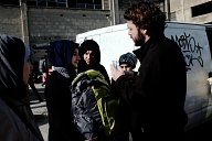 Dancers from Winter-rise festival gathered money to buy backpacks to distribute to the families of immigrants. The backpacks contained steeling bag, thermos and food. A team of five arrived in Chios island and in collaboration with the locals (Chios Solidarity) who are organising and supporting the refugee passage gave the emergency backpacks the first week of January 2016. Vasilis (first in the left), Manos (second from the left), people from the Chios Solidarity movement, Despoina (middle left), Vitoria (middle right) are dancers, Petros (second from the right) from Chios movement and Kostadis (last right) participated in the distribution project.