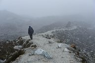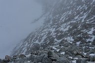 At this time of year, the mountain would be snowy, but for almost all the climbing only loose rocks;