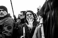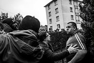 Altercation with anti-migrant residents. They took out a rifle and threatened a demonstration in favor of the exiles gathering nearly 2000 people in the streets of Calais. January 23, 2016. Calais. France.