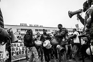 About one hundred Ethiopians of the Oromo ethnic group demonstrate with their departure from the Jungle of Calais. The political march wanted to denounce the persecutions in their country. At the cries of Oromo, free Oromia, the demonstrators left the jungle on foot to reach the hangar where they were waiting for buses to take them to reception and orientation centers (CAO) in the regions. October 24, 2015. Calais. France.