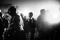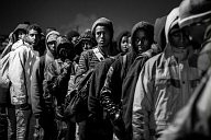 Dozens of refugees are gathered in front of the CAP (temporary reception center) saturated with the camp of the Jungle. Among them are several isolated minors who will sleep outside tonight now that the slum is destroyed. October 27, 2016. Calais. France.