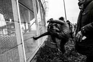 Second day of evacuation of the southern part of the Calais Jungle. Law enforcement officers are driving refugees out of the southern zone where the dismantling has begun. Some people stay until the last moment while others climb on their shelters in the hope of slowing down the demolitions of the barraquements. February 29, 2016. Calais. France.