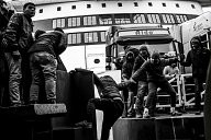 After successfully entering the port, dozens of refugees storm the Spirit of Britain ferry from Dover. After a few hours, understanding that the ferry will not leave, the migrants left on their own. The last ones will be evacuated by the police who will make about twenty arrests. January 23, 2016. Calais. France.