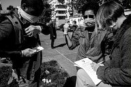 Signature of the certificates of volunteer work required during the confinement period. . Each takes according to the capacity of his bag and his bike. Maraude a velo of the solidarite migrant collective Wilson. Since the last dismantling, refugees have been pushed back on the Saint Denis canal and its surroundings. Scattered in small groups of up to twenty tents, they suffer confinement as a double punishment. Associations try to maintain contact by distributing food and tea in particular. Here no question around the Covid-19 or very little. Having to eat every day is already a miracle. April 4, 2020. Saint Denis, France.