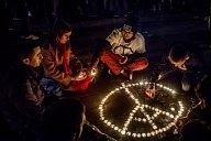 Following the Paris attacks, all night long, many people came to light candles, place words or flowers, on the Place de la Republique, Rue Bichat or Faubourg du Temple. The official death toll of these Islamist terrorist attacks shows 130 dead and 413 wounded hospitalized. November 16, 2015. Paris, France.