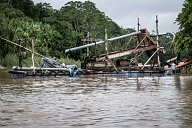 About fifty kilometers from La Pampa, on the banks of the Madre de Dios River, on the outskirts of the village of Laberinto, the miners' barges are legion. The river gold panning is however completely prohibited in Peru. Mercury is mainly discharged into the rivers, poisoning fish and contaminating the sediments.
