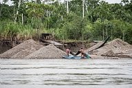 About fifty kilometers from La Pampa, on the banks of the Madre de Dios River, a boat shuttles between the village of Laberinto and the numerous miners' barges. The river gold panning is however totally forbidden in Peru. Mercury is mainly discharged in the rivers, poisoning fish and contaminating the sediments.