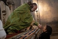the cathedral Sainte-Mère de Dieu (A Stépanakert) - the priest distributes the Eucharist.