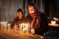 In the cathedral Sainte-Mère de Dieu (in Stépanakert), the faithful light candles and make their prayers.