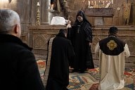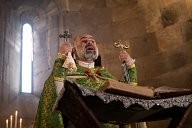Armenia - Gandzasar Monastery - Armenian Christmas - Father Sahak begins his sermon in front of his faithful, he refers to the war at the end of the year 2020 and blesses the fighters.