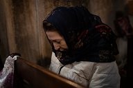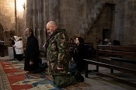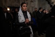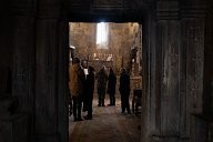 Inside the cathedral Sainte-Mère de Dieu (A Stépanakert), the faithful follow the Christmas mass, the atmosphere is tense.